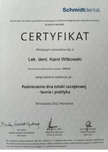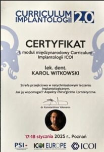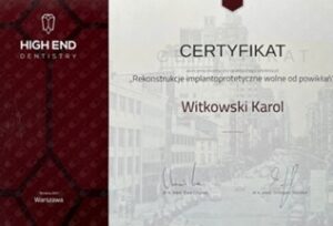 Doktor Karol Witkowski ukończył studia za granicą na wydziale English Division, uzyskując prawo do wykonywania zawodu lekarza stomatologa na terenie całej Unii Europejskiej. Jest autorem pracy naukowej na temat biomechaniki układu twarzowo-czaszkowego.Stale pogłębia swoje umiejętności z zakresu chirurgii stomatologicznej oraz implantologii w ramach kursów, opierając zdobyte doświadczenie na praktyce oraz protokołach minimalizujących powikłania. Implantuje wyłącznie szwajcarskie implanty firmy Straumann, która ze względu na jakość tytanu i wytrzymałość jest uważana za wiodącą markę w dziedzinie implantologii. Jest członkiem organizacji International Team for Implantology oraz Polskiego Stowarzyszenia Implantologii.